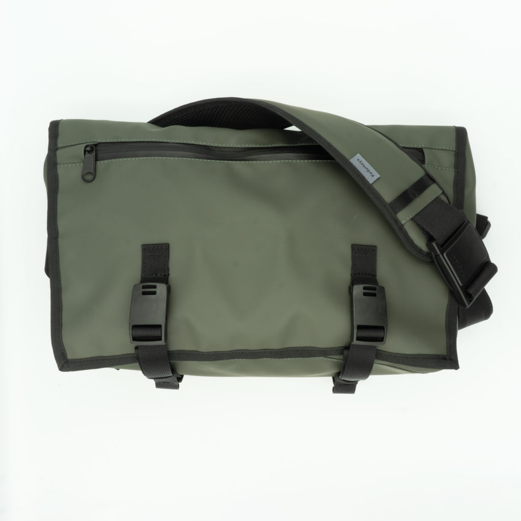メッセンジャーバッグは大きな荷物でも背中に密着させることで安定し、必要なものを素早く取り出せるのが特徴です。